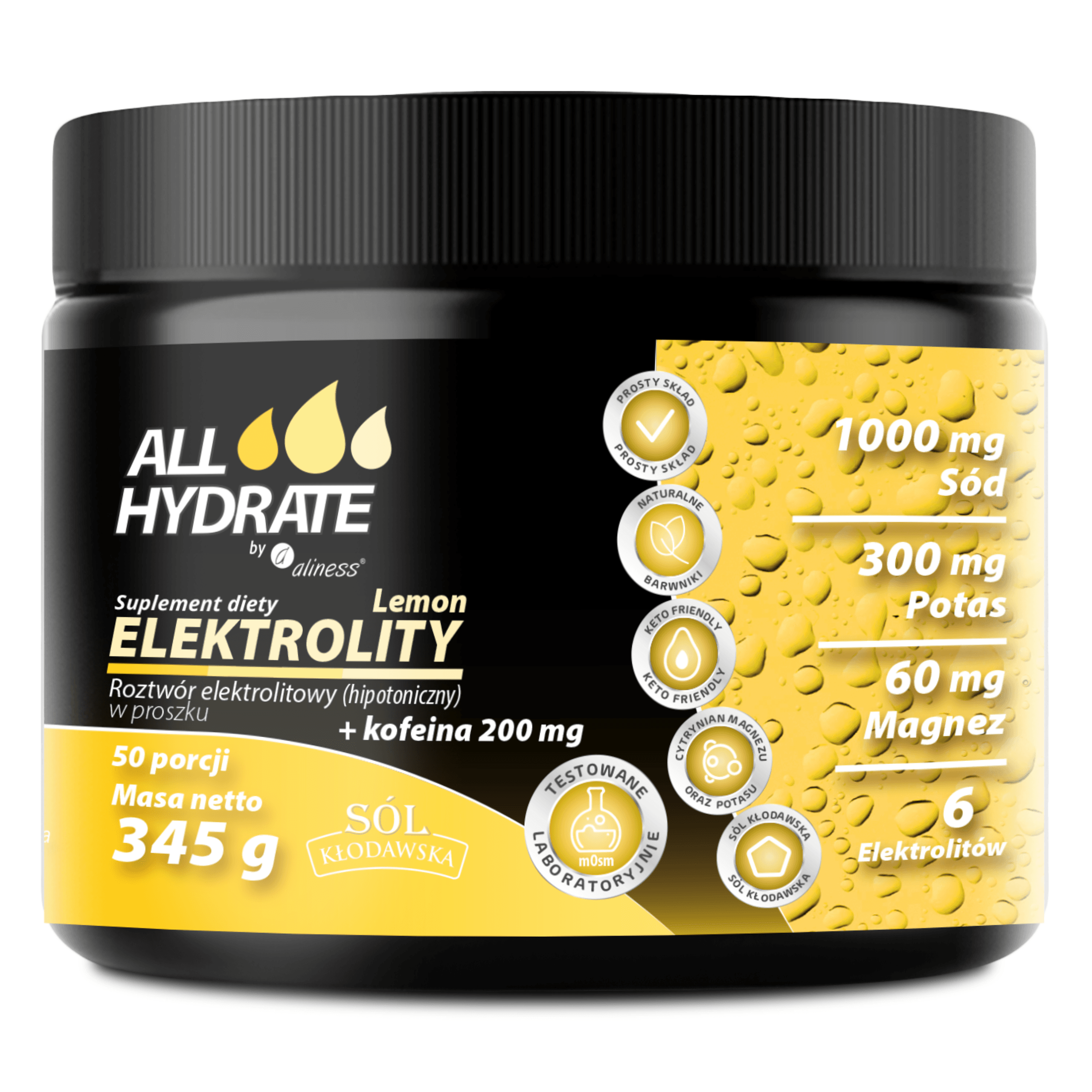 ALLHydrate, Elektrolity Lemon + Kofeina 200mg, 345g, 50 porcji