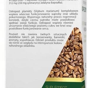 Ostropest plamisty (Silybum marianum) wspiera właściwe funkcjonowanie i regenerację wątroby. Wspomaga prawidłowy proces trawienia. Dodatkowo ostropest pomaga zachować zdrowe serce.